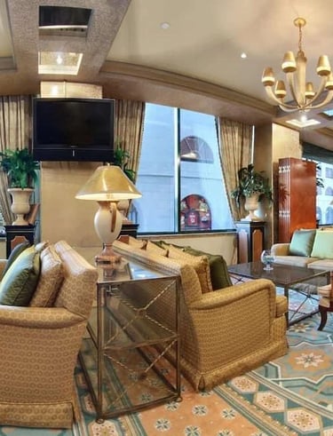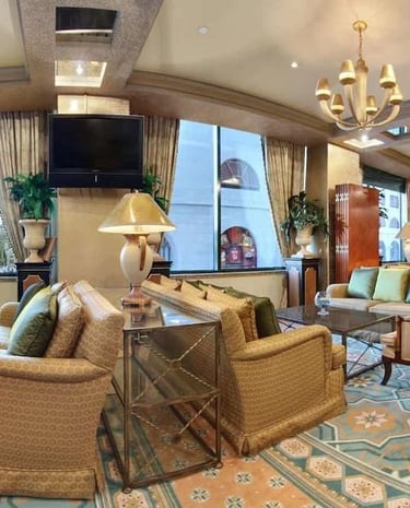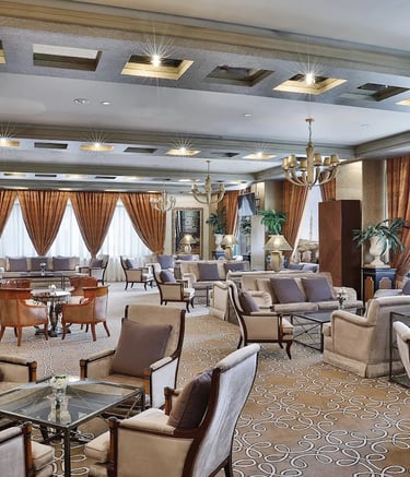 Elegant seating tailored for a grand hotel suite.